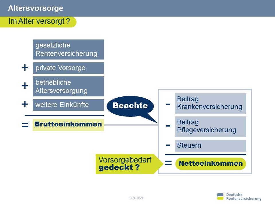 Wir betreuen mehr als 53 Millionen Versicherte und fast 21 Millionen Rentner. Neben unseren Kerngebieten Reha und Rente sind wir Ihr kompetenter Partner in Sachen Altersvorsorge. Bei der zusätzlichen privaten oder betrieblichen Altersvorsorge begleiten wir Sie als Wegweiser – kostenlos und neutral. Bestimmte Finanzdienstleister und Produkte dürfen wir Ihnen aus rechtlichen Gründen nicht empfehlen. Wir unterstützen Sie gerne mit einer breiten Palette von nützlichen Informationen zum Thema Altersvorsorge:
